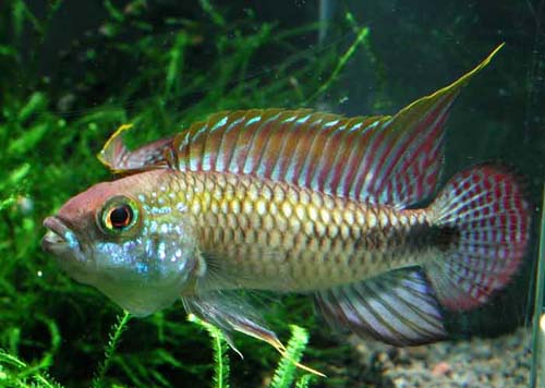 Нерест типичный для апистограмм - в пещерке или в любом укромном месте. Полигамный вид. |